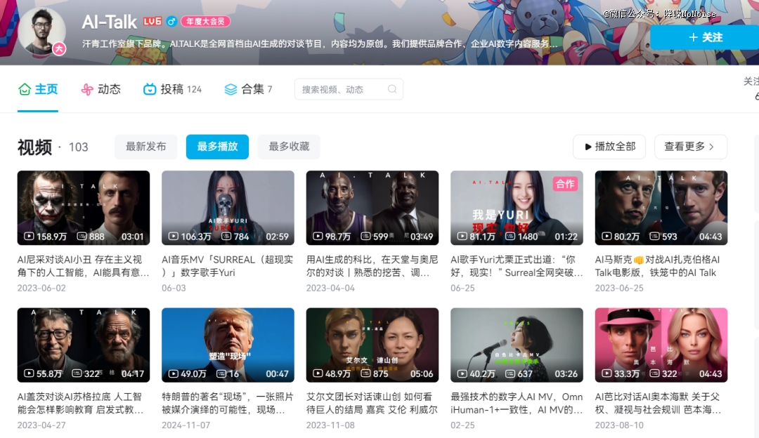 ▲AI-talk的B站主页