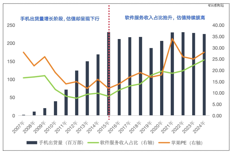 图:业务转型推动苹果的估值逻辑重塑数据来源:wind,36氪整理