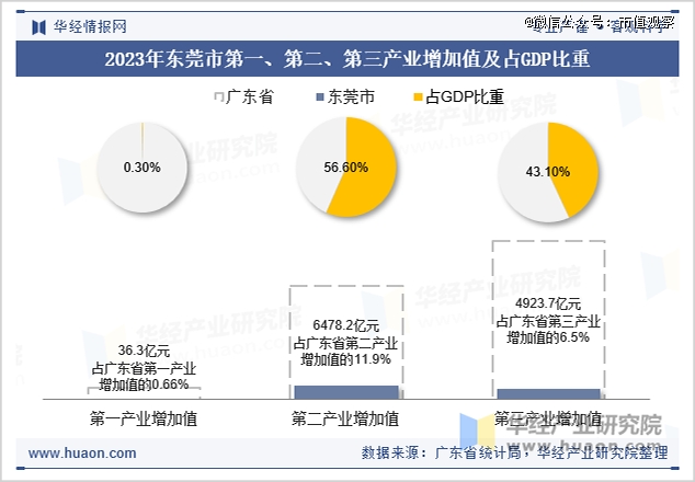 工业制造是东莞经济的基石,第二产业占比达到57%。东莞工业企业数量庞大,2460平方公里的土地上,屹立着22万家工业企业,规上企业高达1.4万家,位居全 国第 一。