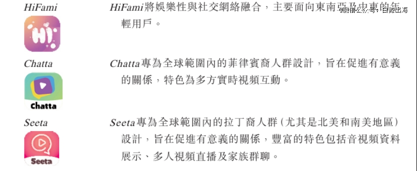 由于营收高度依赖单个产品,加之出于合规问题的考虑,近年来「米连科技」也在积极丰富产品矩阵,探索海外市场。自 2022 年起,「米连科技」陆续推出「HiFami」、「Chatta」和「Seeta」,覆盖东南亚、中东和北美等多个地区。