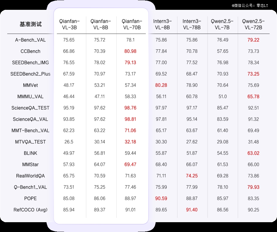 报道指出,“在通用能力基准测试中,Qianfan-VL系列模型(3B、8B、70B)展现出显著核心优势。从视觉理解到专业领域问答,模型性能随参数规模增大提升显著”。