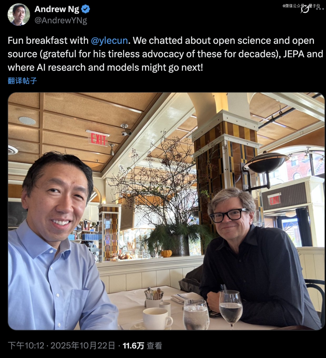 LeCun不语,只是一味的和吴恩达吃早餐。