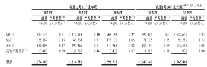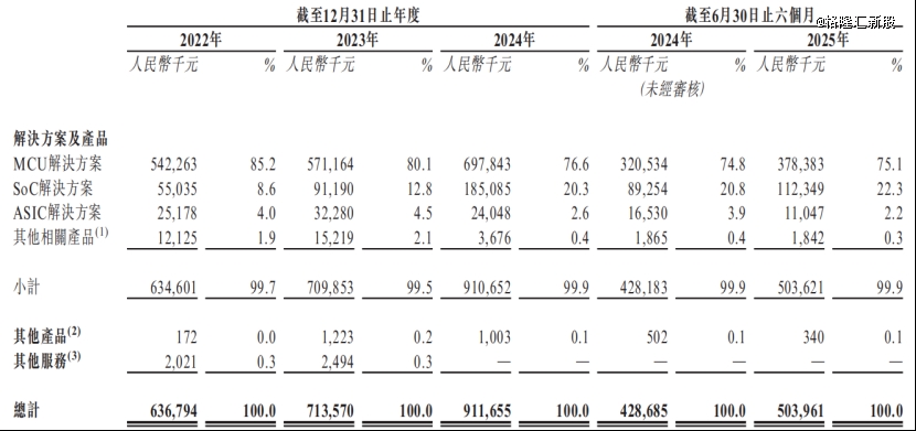 报告期内,中微半导的收益主要来自MCU,2022年MCU的收入占比为85.2%,不过2025年上半年降至75.1%,SoC的收入占比则由8.6%提升至22.3%。
