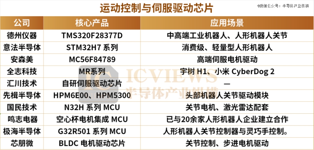 运动控制芯片作为“小脑”,负责将决策指令转化为精准机械动作,管控12-24个自由度的关节电机,需满足0.1ms以内的响应延迟和多轴同步控制需求。伺服驱动芯片则作为“神经传导器”,实现电机力矩、转速的精准调节,电流响应速度与抗干扰性直接影响关节运动的平滑度。