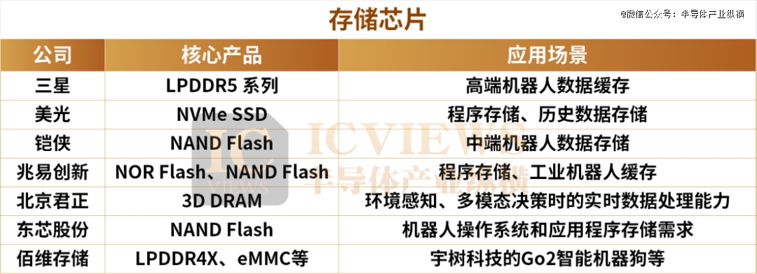 国内方面,兆易创新的NOR Flash用于机器人快速启动代码存储,NAND Flash用于大容量数据记录。