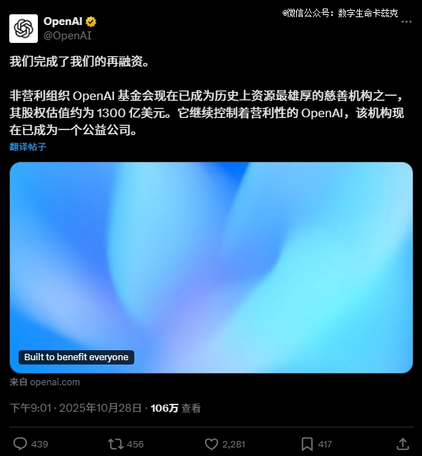 就是OpenAI,历经将近一年,终于完成了重组。
