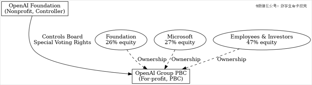 所以,2019年的调整形成了“双层实体”结构,原有的非营利组织(OpenAI Inc.)成为控股母公司,100%控制新成立的营利实体(OpenAI LP)。