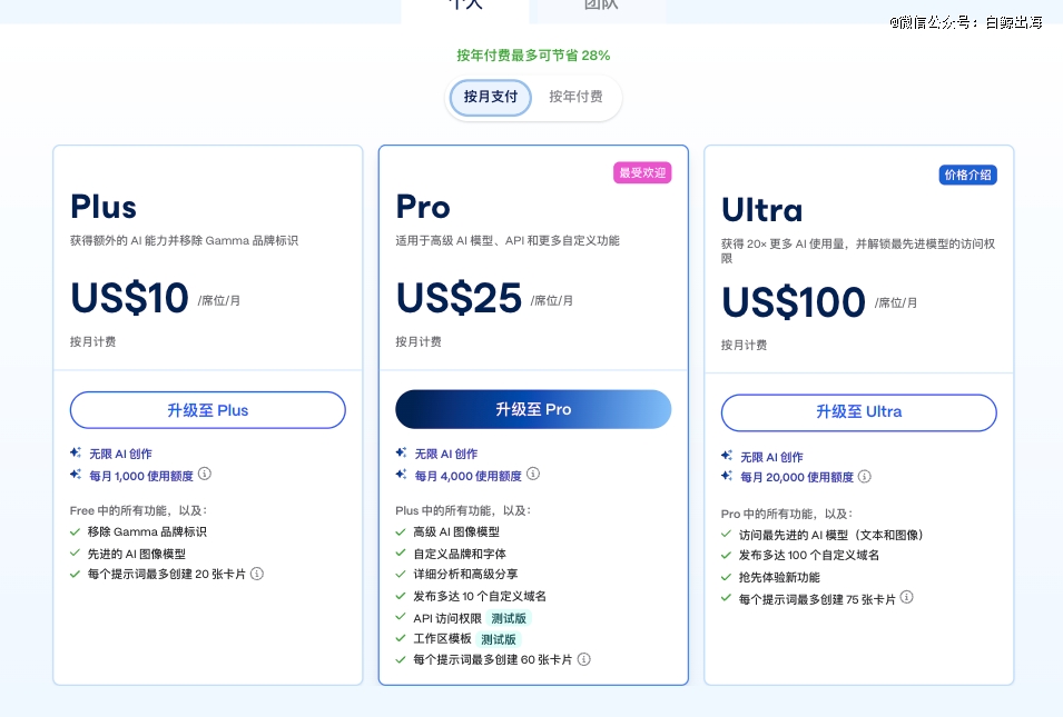 一位 Gamma 的长期付费用户表示,对她来说,Gamma *的特点有两个,一是输出内容的可视化做的比较好,她表示:“Gamma 把各种图表、数据排列、大的框架都安排得很好,配图能力也在持续优化。此外,它能够完全不修改用户上传的内容,完全尊重用户本意。二是多种形式的输入输出,输入方面它支持文字导入和在线文档输入,输出文档、网站、PPT、PDF 等多种内容形式,能够满足不同场景。