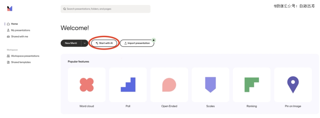 而上文提及的跑出来的 Mentimeter,我们将其称为“新产品”并打上引号,实则是因为该产品早在 2016 年就已经上线,只不过到了 2024 年才加入了 AI,差异点上,Slidesgo 重模版、Prezi 重动画效果,而 Mentimeter 则更倾向“互动性”。