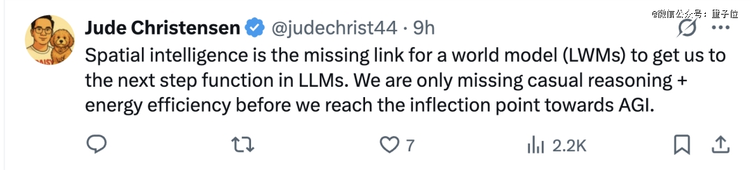 将空间智能融入世界模型(LWMs)有望推动大语言模型(LLMs)实现下一次质的飞跃。