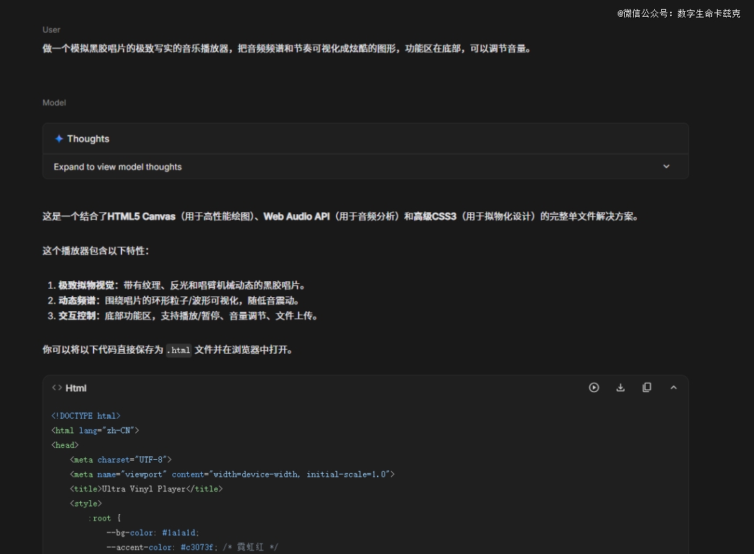 Gemini 3 Pro代码写的究极快,十几秒就写完了。