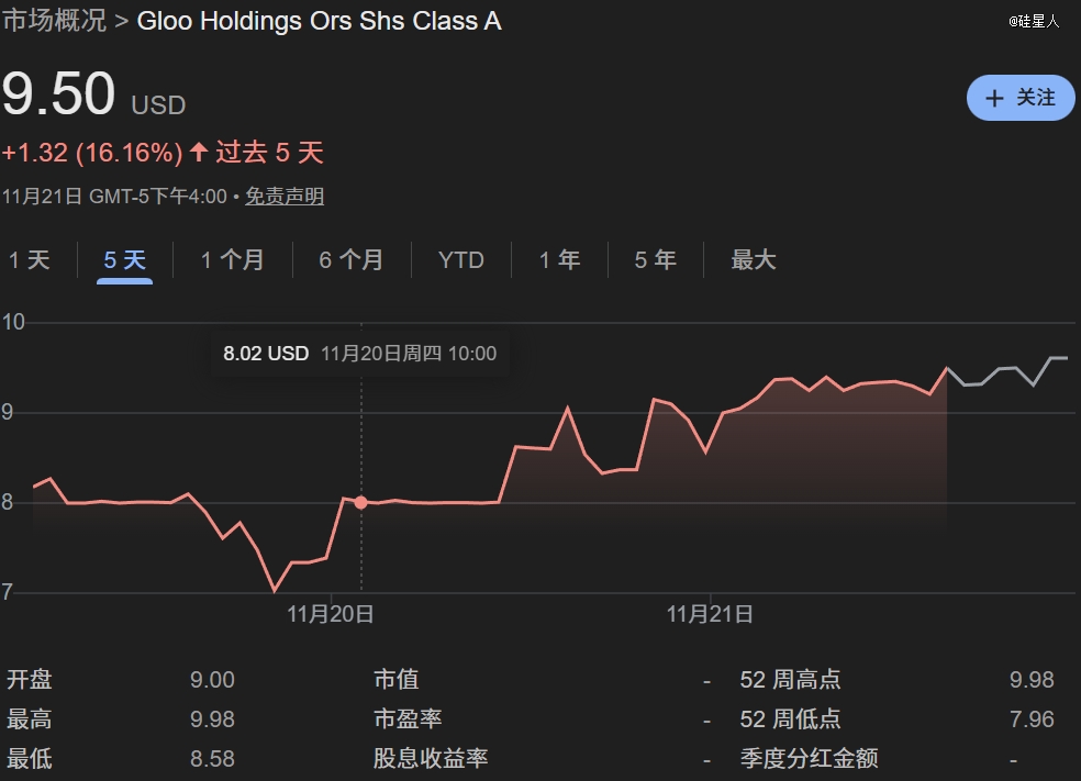 11月19日上市至今,Gloo的股价涨了18.75%,目前市值7.47亿美元。