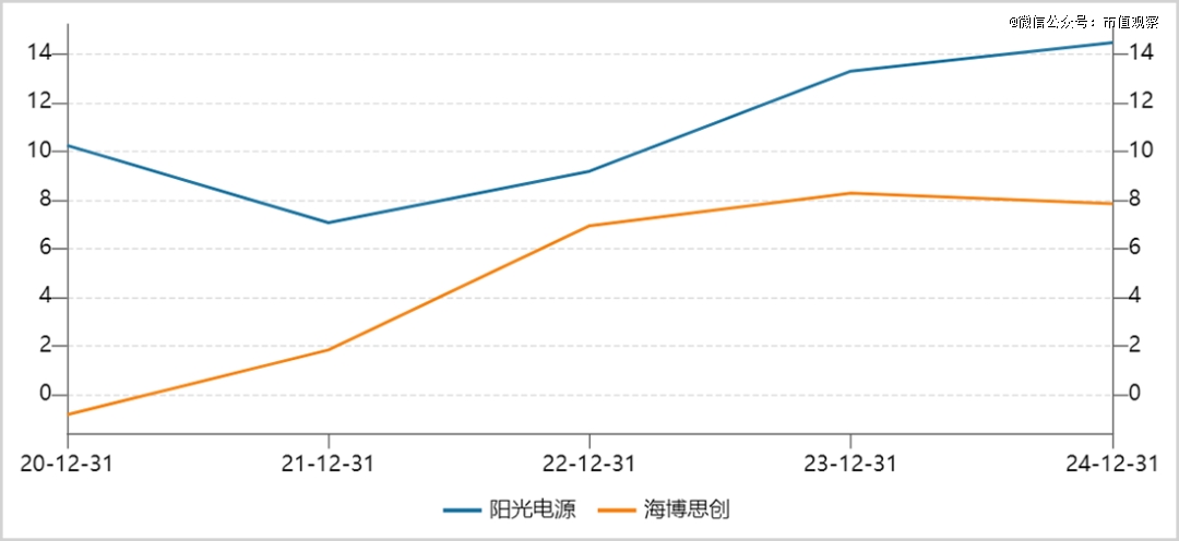 ▲阳光电源VS海博思创净利率走势图,来源:Wind