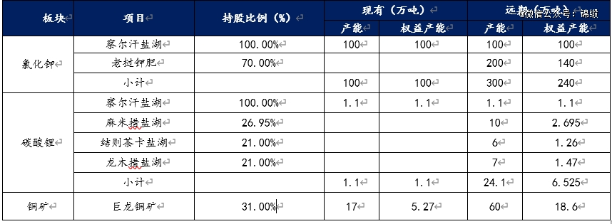 高速发展期(2022年-2024年):2022年,巨龙铜矿投产;2023年,参股结则茶卡、龙木错盐湖(合计权益21.09%),卡位西藏优质盐湖资源;同年,出海布局老挝钾盐矿。