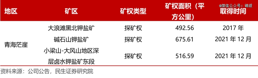 图:藏格矿业在青海茫崖取得的钾盐探矿权。备注:据会计报表附注,探矿权账面价值1.59亿元,未开采前不计提摊销