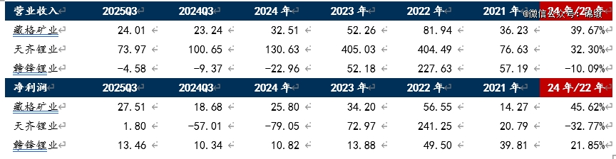 若以2022年为基准进行对比,藏格矿业的相对韧性体现在:2024年净利润较2022年高点下降54%,而同期天齐锂业已陷入深度亏损,赣锋锂业净利润较峰值降幅更高达78%。